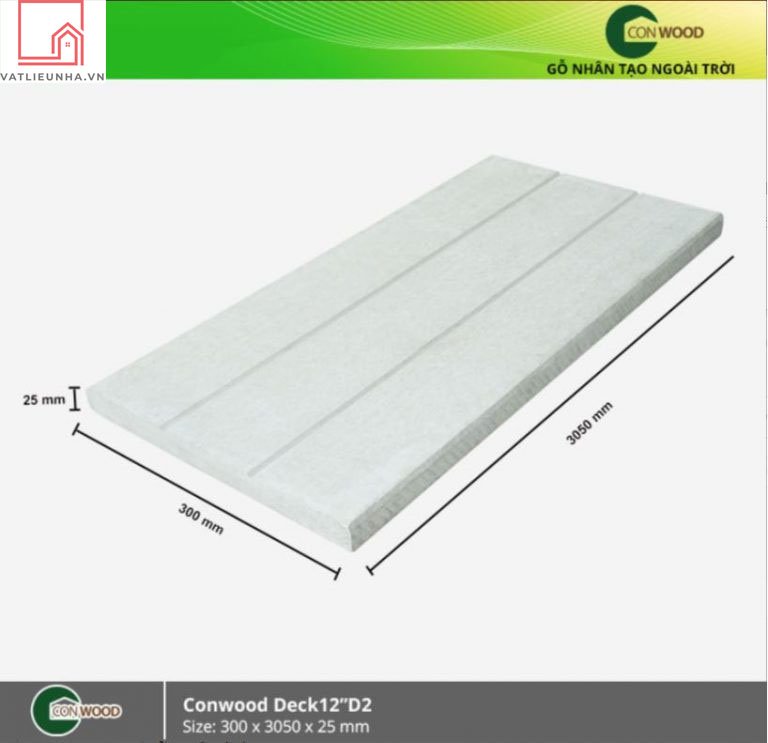 Mô tả Thanh lót sàn Conwood Deck 12″D2 (4″ 3in1) kích thước 300 x 3050 x 25mm